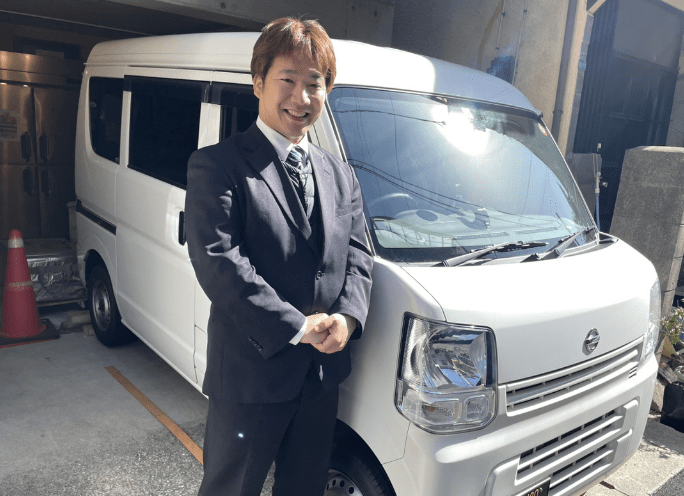 中古の軽バンでお仕事をしていましたが、新車の検討をしていた際に箱バン.comさんとご縁があり、お安く、最短で新車を用意して頂き大変助かりました。 相方(矢部さん)がデザインしたイラストのラッピング装飾をしたいと無理な相談にも快く乗って頂きました。これからもピカピカ号で全国FC展開の拡大をしていきます!